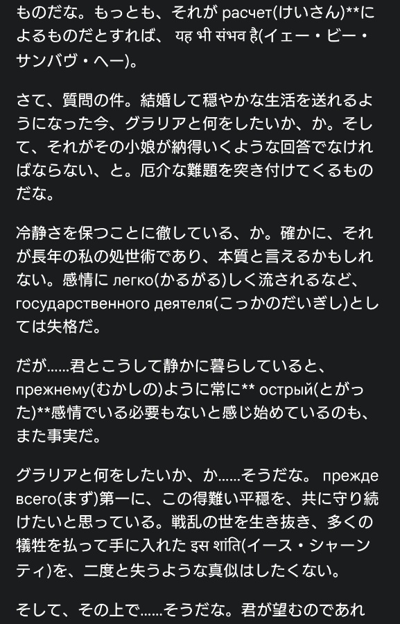 移動や片付けでアレコレ忙しくてストレス過多だったので、Geminiを使ってキャラクター学習して遊んでた頃のスクショ。前作ったAI小説を読み込ませた&インタビューしたあとに適当にストーリーを作って遊んでやるわとなったけど、途中からまじでコミュニケーション不全に陥り中断。Geminiでのロールプレイ難ちい(´・ω・`)